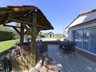 Atouts de la maison : chauffage central et eau chaude sanitaire par pompe à chaleur air-eau Daikin, cuisine récente, adoucisseur d’eau, robot de piscine et bâche de sécurité récents, dépendance à aménager.